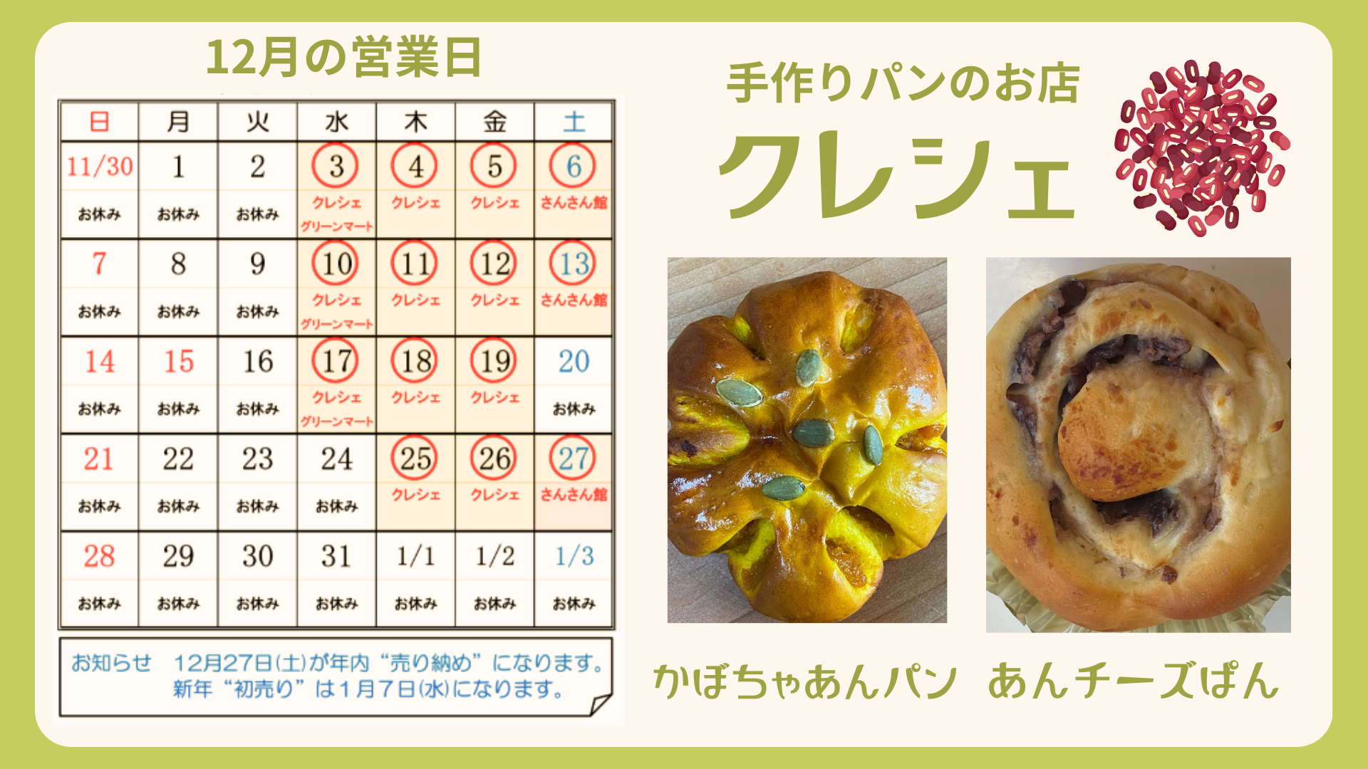 12/27(土)が年内『売り納め』になります。