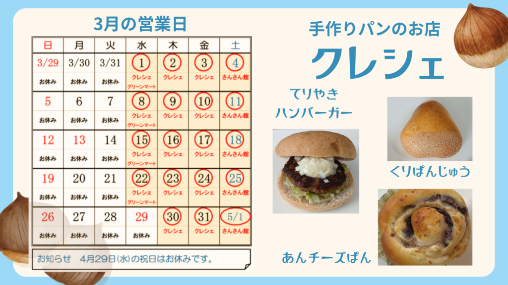 4/29(水)は祝日のためお休みとなります!
